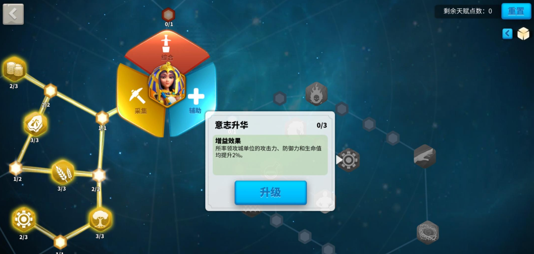 天赋加点对采集效率影响很大,一定要优先点满高级工具这条线。天赋树最右边的利手良器能提升15%采集速度,点满后效率直接起飞。如果天赋点不够,可以先放弃行军或战斗类天赋,专注把采集天赋拉满。副将不用升太高等级,只要主将达到37级解锁全部采集天赋就够了,省下的经验可以留给其他武将。