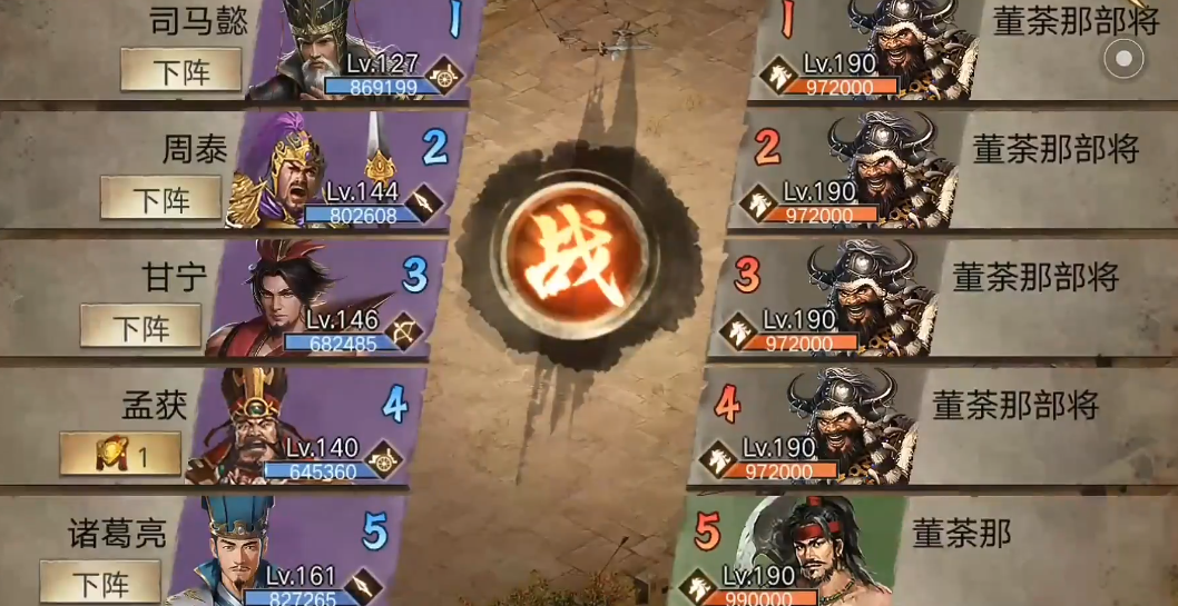 貂蝉作为首发武将具有关键作用,其战法魅惑可概率控制大象阵面,成功释放后大幅降低副本难度。若战法未命中需重新尝试。副将司马懿的反伤机制是应对董荼那战法的核心,需确保其能反弹第三将技能。觉醒甘宁需佩戴二级极凤凰套装与琉璃玉符,战术克制后尽量延后释放主动战法以最大化伤害。