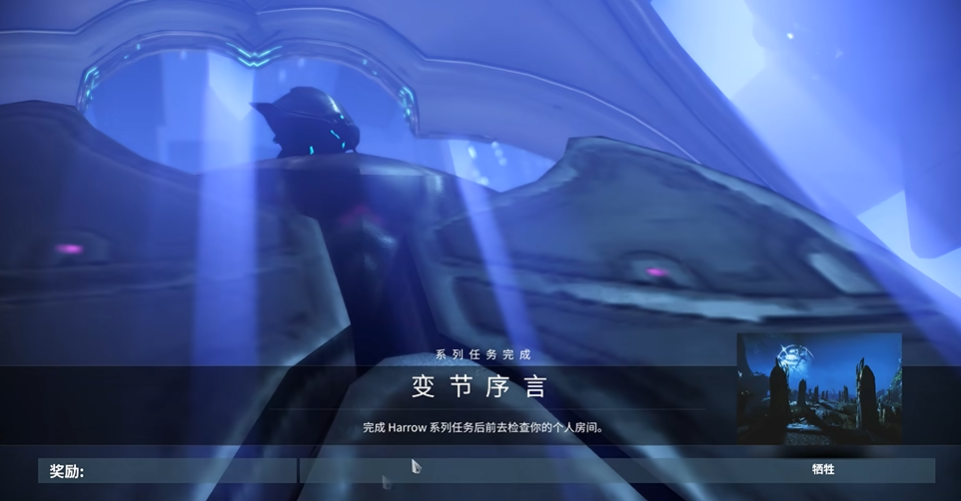 接下来必须完成Harrow的枷锁系列任务,这是触发变节序言的最后一道门槛。该任务涉及复杂的剧情和解谜元素,可能需要花费较长时间完成。在成功完成Harrow的枷锁后,系统会自动解锁变节序言任务,玩家可以进入个人居住模块,在房间尽头靠近窗户的位置找到一个漂浮的紫罗兰色月球全息影像。