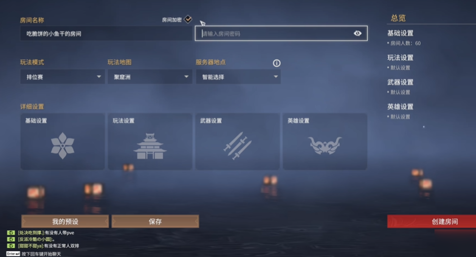 创建自定义房间时,重点留意人数和密码设置。建议把人数限制为2人,这样就能和好友1v1专心练刀。密码一定要设,避免路人乱入打断节奏。房间类型选无尽试炼最省心,因为这个模式会自动配装备,不用浪费时间捡物资。如果想让对抗更贴近实战,可以把护甲调成极品、武器调成凡品,这样既能练连招又不会秒躺。