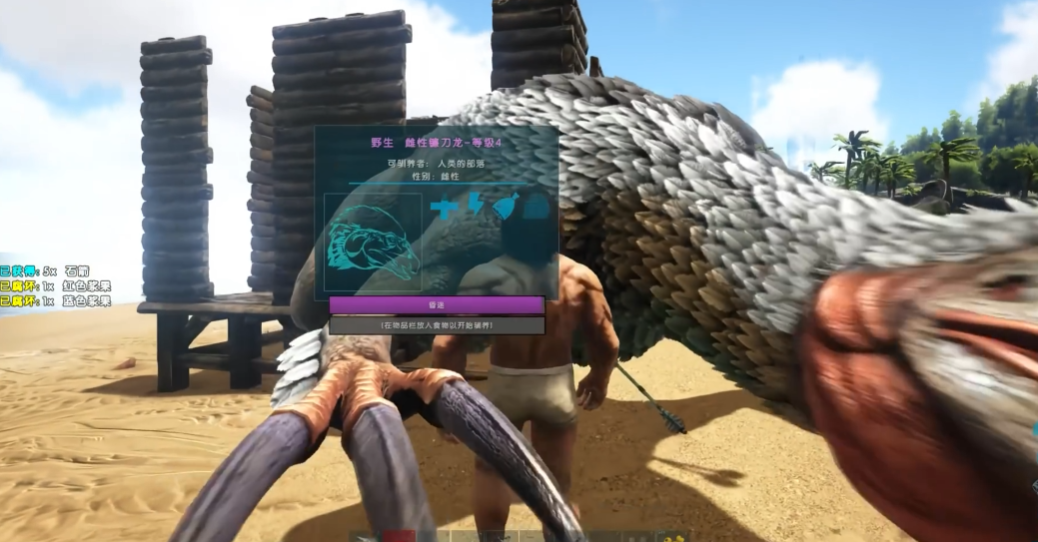驯服策略上,推荐利用地形或人工建筑进行卡位。镰刀龙移动速度较慢,玩家可建造双层木柱围栏或利用金属广告牌配合大型捕兽夹限制其行动。击晕后需优先喂食斑龙蛋饲料以加速驯服进程,若缺乏饲料则可用蔬菜或紫色浆果替代。驯服期间需持续补充麻醉药以维持眩晕值,建议携带静心膏缩短驯服时间。