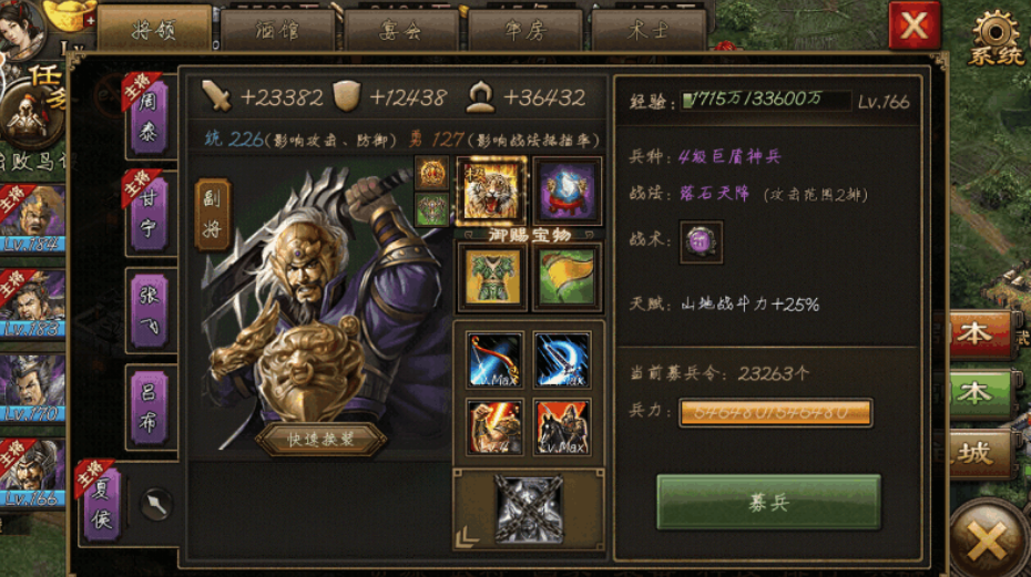 武将培养方面,建议将夏侯惇等级提升至80级以上并配备四星强防紫装,这样能确保其单次受击伤害控制在200点左右。甘宁需要达到81级并强化强壮属性,使其在承受战法后仍有余力反击。许褚作为战法将无需过高配置,保持基础攻击属性即可发挥作用。马超的骑兵单位要注意保持机动性,在程昱战法冷却期间进行集中输出。整个队伍的资源分配应遵循前排优先原则,确保坦克武将的生存能力。
