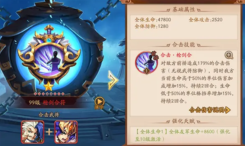 魏国阵容的核心优势在于强大的控制能力和稳定的输出表现,合击技能的选择直接影响战斗效果。魏国武将的合击搭配需围绕控制、减怒、爆发三个关键点展开,优先选择能强化阵容特性的兵符。橙色合击推荐地刺符、憾天符、悍勇符,红色合击则以寒冰裂符、枪剑合符、救苍生符为主。这些技能不仅能压制敌方行动,还能通过减益效果削弱对手战斗力。