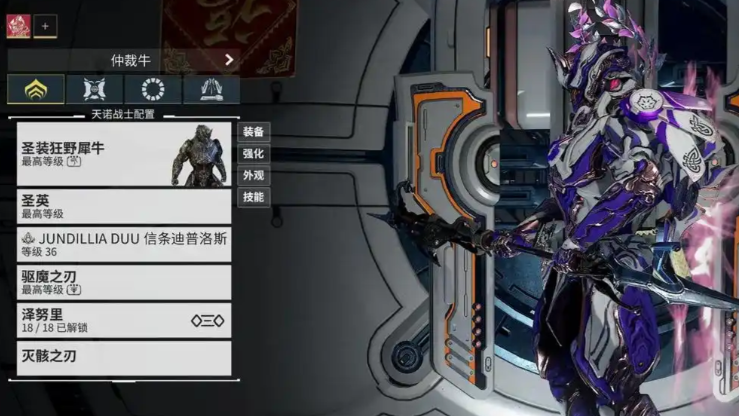 狂野犀牛(Rhino)是登录即送的实用战甲,其高护甲和生存能力显著降低开荒难度。二技能铁皮皮肤可提供免控和伤害吸收效果,三技能战吼能提升团队输出,这种攻防兼备的特性使其成为新手过渡期的理想选择。该战甲碎片可通过金星BOSS战获取,制作材料需求相对平缓,适合作为首款额外获取的战甲。