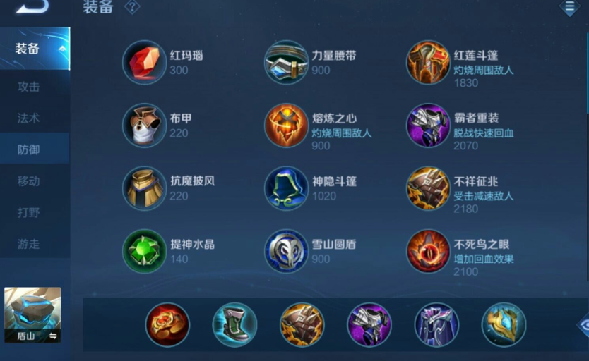 盾山到了后期,装备追求的是更高的坦度和续航能力。霸者重装是很多玩家喜欢出的一件装备,它能提供巨额的生命值,而且脱战后还能持续回血,让盾山不用频繁回城,可以一直在线上或者野区给到队友支援和保护。 最后一件装备的选择比较灵活,可以根据局势来定,如果求稳可以继续补一件防御装比如不祥征兆来进一步降低敌人的攻速和移速,或者出贤者的庇护来获得一次复活的机会。 也有一种思路是出形昭之鉴这样的主动辅助装,利用它的范围减速效果来探草丛或者留人。 记住出装不是死板的,你需要观察对面谁的伤害最高、什么类型的伤害最致命,然后有针对性地出装,这样才能让盾山真正成为一个打不动的堡垒。
