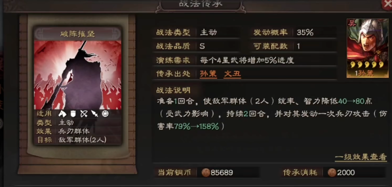 破阵摧坚这个战法,恰好就是那种需要准备一回合的强力输出技能。它的效果是对敌军全体造成一次高额的兵刃伤害,并且在造成伤害的同时,还能降低敌军的统率和智力属性。这就非常厉害了,它不仅仅是一个输出技能,还附带了一个强大的削弱效果。降低统率等于削弱了对手的物理防御,让我方后续的兵刃伤害打得更疼;降低智力则等于削弱了对手的法术防御和谋略输出能力。赵云本身属性高,由他来发动这个技能,伤害基础就很高,再加上破防效果,能为整个团队创造巨大的输出优势。可以说,用赵云带破阵摧坚,是把他稳定输出核心的特点发挥到了极致。