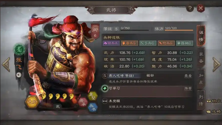 赵云的自带技能一身是胆是他最大的资本,这个技能让他获得全程的洞察状态,意味着战斗中完全免疫所有控制效果,比如震慑、虚弱、缴械这些都对他无效。这个技能还会永久提升他的武力、统率、智力和速度属性,让他变得攻防一体,属性非常全面。正因为赵云不怕被打断,所以他非常适合携带那些需要准备一回合的高伤害主动战法,这类战法虽然威力巨大,但最怕的就是准备过程中被对手控制技能打断。赵云依靠洞察完美解决了这个后顾之忧,可以稳定地打出爆发。
