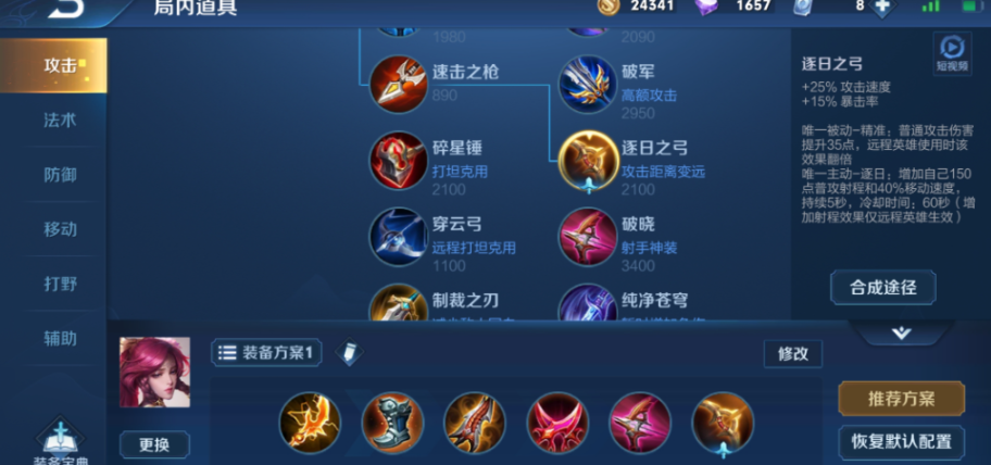 游戏进入中后期,伽罗需要考虑如何对付逐渐肉起来的对手,这时候破晓就是无可替代的神器。这件装备对射手来说太全面了,提供攻速、暴击率和物理攻击,最关键的是它的物理穿透效果,对坦克英雄能造成有效伤害。出了破晓之后,伽罗的打前排能力会得到巨大提升。在出破晓之前,可以先把速击之枪这个小件做出来,它能提供不错的攻速和精准被动,性价比很高,后期再合成逐日之弓或者其他装备。