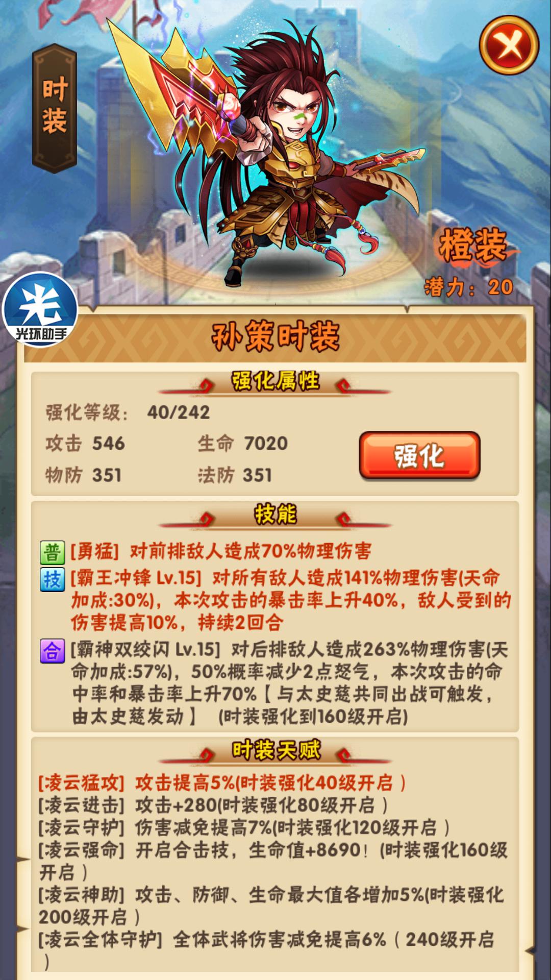 吴国红时装主要包括周瑜和孙坚等经典造型,它们各自针对不同战斗风格设计。周瑜时装主打灼烧效果,能增强火烧伤害,适合搭配小乔等武将形成持续输出体系;孙坚时装则更侧重生存能力,提供额外的防御和生命加成,适合放置在前排承受伤害。这些红时装的品质直接影响角色战力上限,早期投入资源获取能为阵容奠定坚实基础,玩家应根据养成阶段优先解锁核心武将的配套时装。
