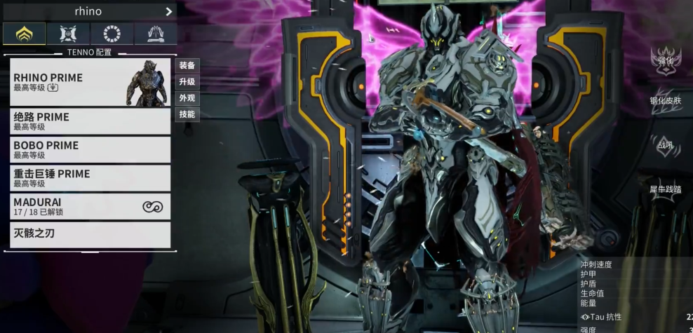 完成新手引导并回到飞船后,玩家的下一个目标应是尽快获取一套更为专精或坚固的战甲以应对后续星球任务,其中狂野犀牛被认为是开荒阶段性价比极高的首选目标。该战甲的核心优势在于其强大的生存能力,其二技能钢化皮肤可以直接提供高额伤害减免并免疫异常状态,极大地提升了任务中的容错率。其设计图部件可通过击败金星首领豺狼获得,制作材料在游戏前期也相对容易收集,成型速度较快。登录游戏时系统也可能赠送该战甲,使其成为新手在初始战甲之外一个可靠且重要的过渡选择。