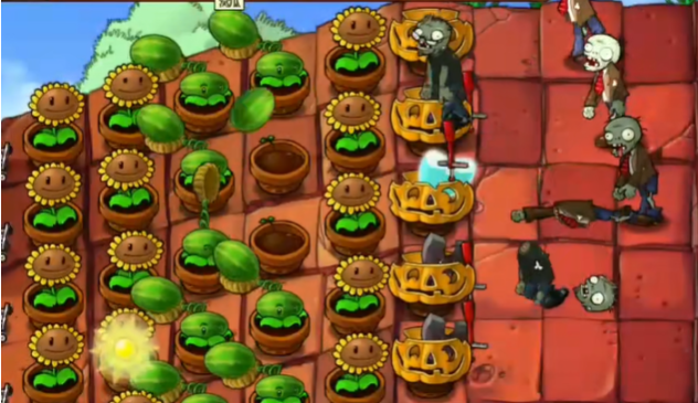 蹦蹦僵尸踩着弹跳杆,能快速移动并轻松跳过普通植物,因此必须使用能克制其跳跃能力的植物组合。关键植物包括:用于生产阳光的向日葵、可瞬杀单个僵尸的倭瓜及其模仿者、能吸走跳杆使其失去跳跃能力的磁力菇、可以直接阻挡并撞掉跳杆的高坚果、提供范围伤害的西瓜投手、作为基础防御的坚果墙,以及用于紧急清场的末日菇。磁力菇是本关的战略核心,但因其在屋顶关卡白天会睡眠,务必搭配咖啡豆唤醒。