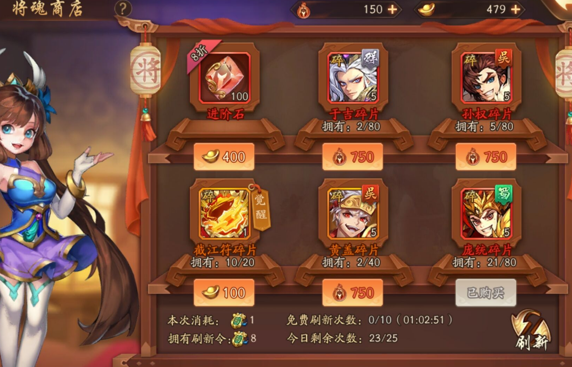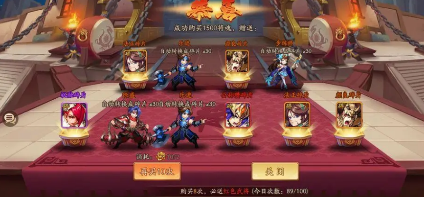 神秘商店是金币性价比极高的消耗渠道,商店内会刷新进阶石、突破石、武将碎片、计谋心得等关键道具,遇到折扣价格时直接购入,长期积累可大幅缩短养成周期,武将碎片即便不是当前阵容武将,集齐升星后可激活全体属性加成,收益稳定且持久,进阶材料储备充足后可适当减少采购,其余道具在金币充裕情况下全部拿下,比盲目投入强化更具长期收益。