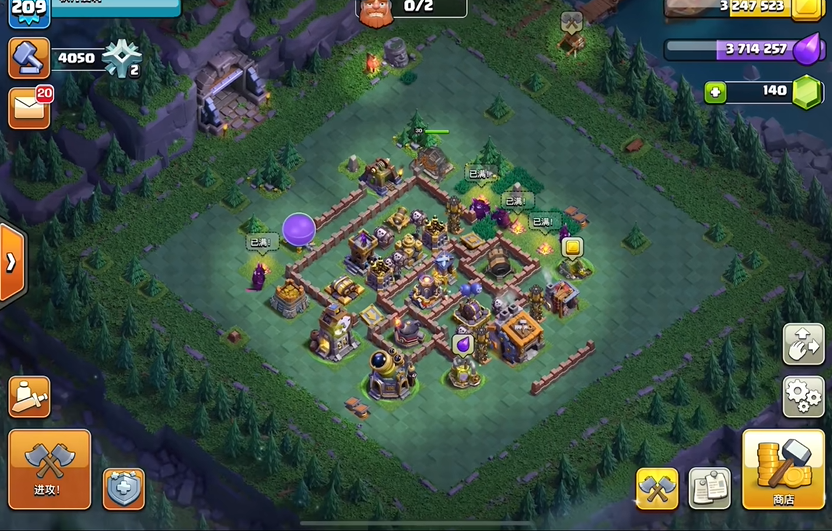 收尾阶段,剩余蓝胖与女巫清理外围剩余建筑,弓箭手、哥布林快速收割资源建筑与角落防御,确保摧毁率达标。整个过程需保持耐心,不急于下兵,每一步操作都围绕蓝胖的输出环境展开,通过控场与续航让蓝胖持续发挥范围伤害优势,最终实现高效破阵与三星目标。