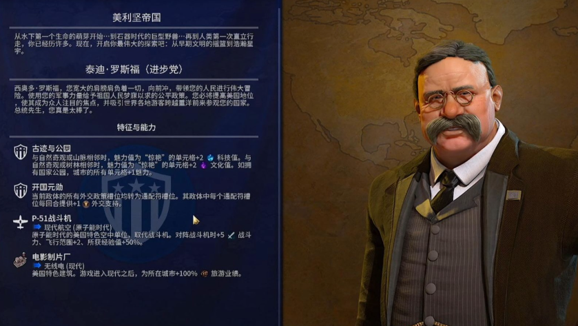 选择美国文明时最适合走文化胜利路线。泰迪罗斯福的领袖特性让美国在文化输出方面有天然优势,尤其是电影制片厂和国家公园的组合能大幅提升旅游业绩。前期咱们可以利用本土作战的战斗力加成快速扩张,中后期则专注于提升地块魅力和文化设施建设。
