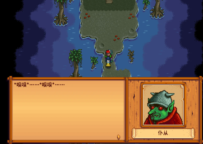 触发哥布林的难题任务需要先完成黑暗护身符任务。该任务是游戏主线剧情的一部分,玩家需要前往铁路区域的山洞,使用黑暗护身符打开通道。进入山洞后,会触发巫师剧情,随后系统会指引玩家前往女巫沼泽哥布林会挡住通往女巫小屋的路,任务正式触发。