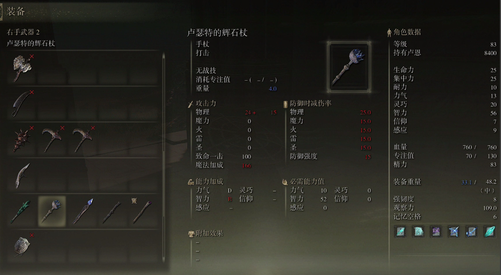 装备搭配直接影响战斗体验,尤其是法师职业的装备选择尤为重要。右手武器推荐名刀月隐,这把武器拥有出血效果和高削韧,对付人形怪特别舒服,战技的居合斩还能释放远距离光波,无论是清小怪还是打BOSS都很实用。左手可以选择卢瑟特的辉石杖,虽然蓝耗较高,但魔法加成比女王杖更强,适合快速泄蓝打爆发。如果喜欢重力系魔法,可以备一把陨石杖增伤,切换使用更灵活。防具方面优先选属性抗性高且重量轻的混搭,比如魔女套和占星套的组合,既保证生存又不影响翻滚。