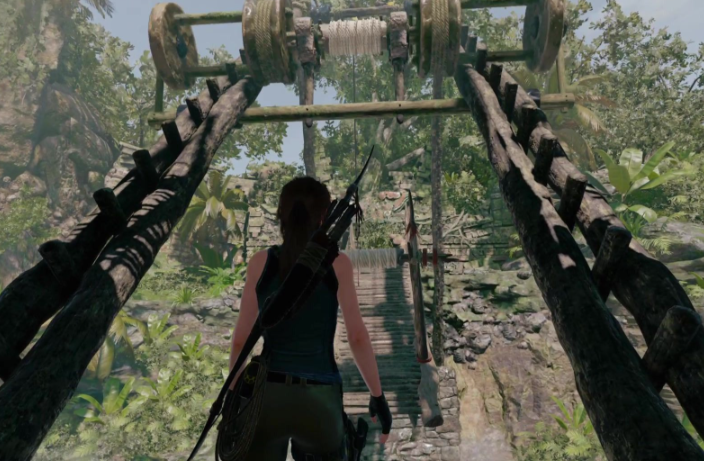 在秘鲁丛林的断桥处,咱们需要利用水利机关将木桥升起来。首先来到断桥前,根据对话提示爬到水塔顶部开排气阀。沿着石轮后面的木梯爬上去,拉动开关让水塔工作。回到石轮处推动机关,记得需要两个人一起推才能成功,这样水流会导入绿色容器。