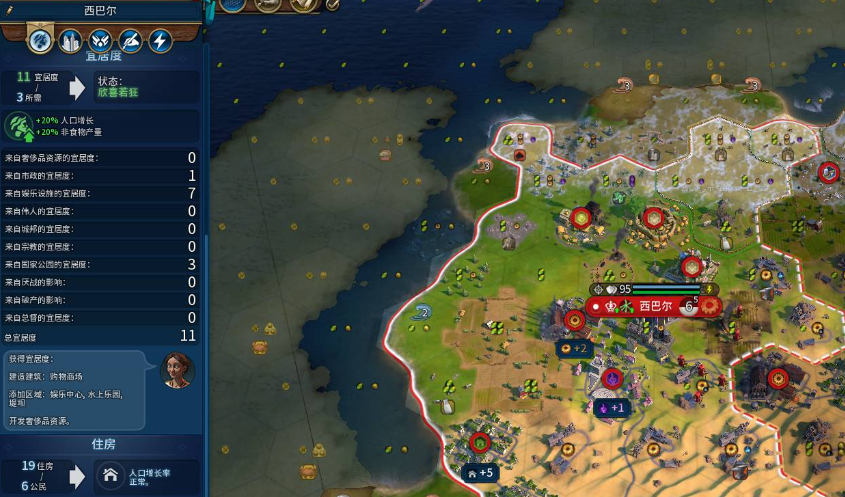 维持人口、住房与宜居度之间的平衡是防止其下降的关键。城市人口增长本身会消耗宜居度,通常每增加一定人口就会减少宜居度点数。如果人口数量超过住房容量,将导致额外的宜居度惩罚。你需要通过建造粮仓、水渠、社区以及改良农田等来提升城市住房容量,确保住房至少比当前人口多2,以支持健康增长并避免惩罚。在人口已接近住房上限或宜居度吃紧时,应有意识地控制人口过快增长。灵活运用政策、政体、宗教信仰和伟人等游戏内系统能提供额外的宜居度加成。