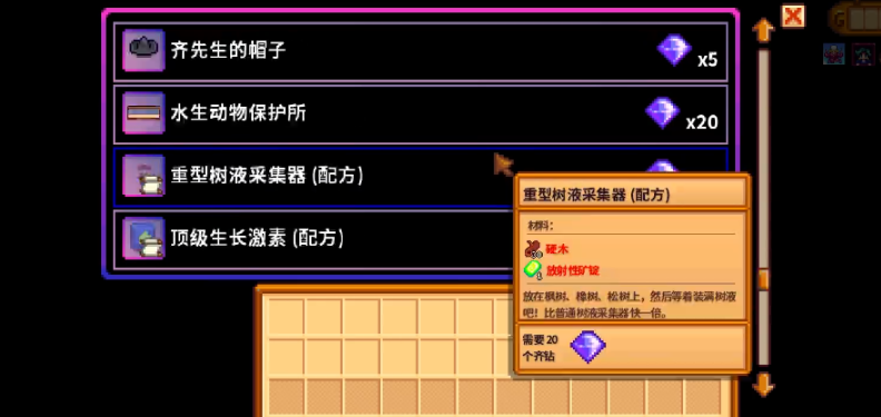 齐钻是齐先生的特殊货币,作为一种非常珍贵的宝石资源,它无法通过常规购买获得,其核心用途是在齐钻商店兑换一系列能极大改变游戏体验的稀有物品,例如能随时随地召唤坐骑的马笛、回收材料用的分解机以及扩展灌溉范围的加压喷头。获取齐钻的整个流程始于游戏后期对姜岛的探索,你必须先修复社区中心或完成乔贾仓库的献祭任务来修复海滩上的船,从而乘船抵达这个全新区域。登岛后的首要目标是收集散落在岛上各处的黄金核桃,当你坚持不懈地收集到整整100个黄金核桃后,才能开启姜岛深处的齐先生核桃房,房间右侧那台被称为齐钻商店的机器,便是所有兑换行为发生的地方,只有到达这一步,齐钻的获取才具有实际意义。