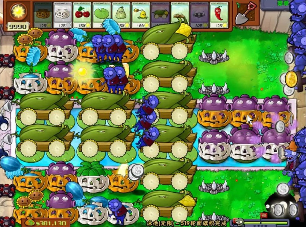 中期阵容成型后,保持每列至少一个冰西瓜投手与玉米投手的组合,前排高坚果与南瓜头及时修补破损,保护伞覆盖无死角。后期僵尸波次密集,会出现大量橄榄球僵尸、巨人僵尸与小鬼僵尸,此时需稳住阳光储备,不盲目种植高价植物,优先修补防御与补充核心输出。若某一路防线告急,可用辣椒或樱桃炸弹紧急清场,同时快速补种高坚果与南瓜头,避免僵尸突破防线。全程保持植物布局紧凑,不浪费花盆与阳光,输出与防御植物比例均衡,控场与伤害相互配合。